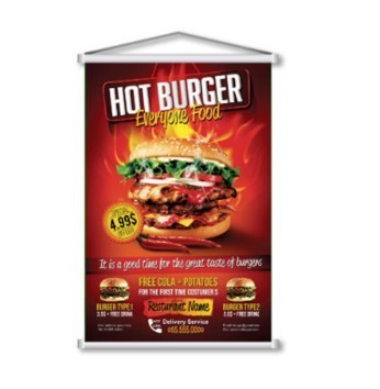 Banner em lona 440g com Bastão, Ponteira e Cordão – Pronto para Pendurar